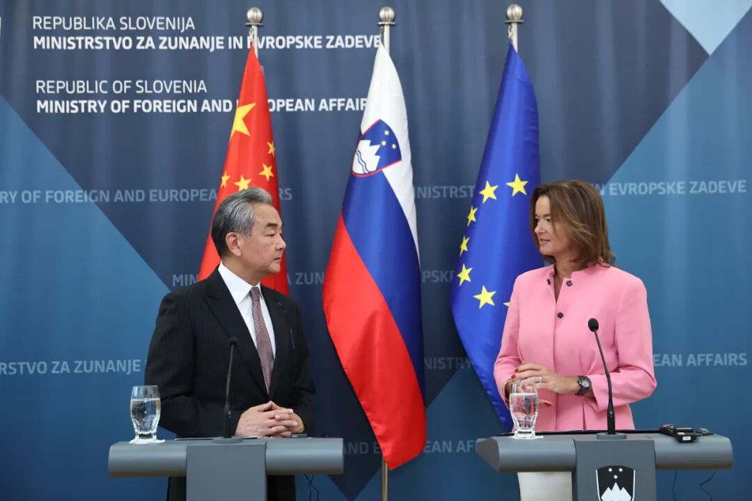 当地时间2025年9月13日,中共中央政治局委员、外交部长王毅在卢布尔雅那同斯洛文尼亚副总理兼外长法永会谈后共同会见记者。
